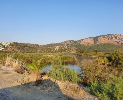 DALAMAN, KAPUKARGIN MEVKİİNDE KAPLICA VE GÖLE SIFIR, DENİZE 200M MESAFESİNDE 7000M2 ARAZİ.